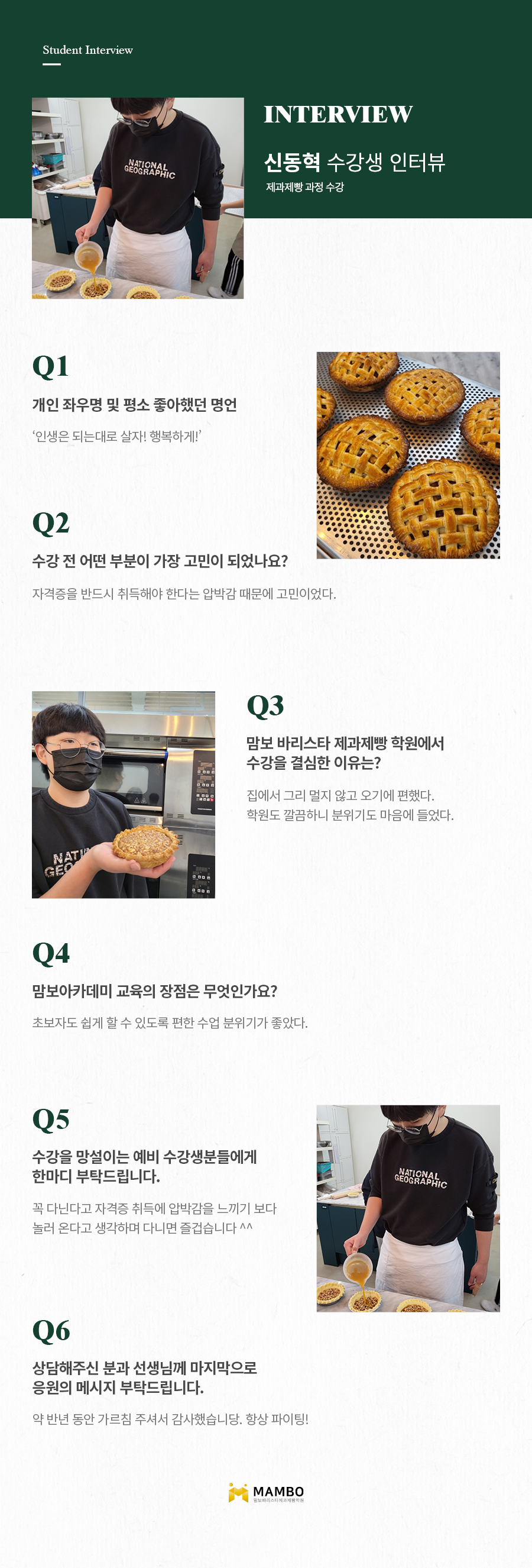 제1조 (개인정보 수집에 대한 동의)맘보교육그룹(이하 회사)는 이용자들이 회사의 개인정보취급방침 또는 이용약관의 내용에 대하여 “동의”버튼 또는 “취소”버튼을 클릭할 수 있는 절차를 마련하여, “동의”버튼을 클릭하면 개인정보 수집에 대해 동의한 것으로 봅니다. 제2조 (개인정보 수집항목) 온라인 문의를 통한 상담을 위해 처리하는 개인정보 항목은 아래와 같습니다. 수집항목 : 성명, 이메일, 전화번호 제3조 (개인정보의 이용목적) 회사는 이용자의 사전 동의 없이는 이용자의 개인 정보를 공개하지 않으며, 원활한 고객상담, 각종 서비스의 제공을 위해 아래와 같이 개인정보를 수집하고 있습니다. 모든 정보는 상기 목적에 필요한 용도 이외로는 사용되지 않으며 수집 정보의 범위나 사용 목적, 용도가 변경될 시에는 반드시 사전 동의를 구할 것입니다. - 성명 : 제품상담에 따른 본인 확인 - 이메일, 전화번호 : 제품상담 및 이벤트 관련 고지사항 전달, 새로운 서비스 및 신상품 정보 제공(DM, SMS, 이메일 등 이용) 이용자는 개인정보의 수집/이용에 대한 동의를 거부할 수 있습니다. 다만, 동의를 거부하는 경우 온라인 문의를 통한 상담은 불가하며 서비스 이용 및 혜택 제공에 제한을 받을 수 있습니다. 제4조 (개인정보의 보유 및 이용기간) 원칙적으로 개인정보 수집 및 이용목적이 달성된 후에는 해당 정보를 지체 없이 파기합니다. 그리고 상법, 전자상거래 등에서의 소비자보호에 관한 법률 등 관계법렵의 규정에 의하여 보존할 필요가 있는 경우 회사는 관계법령에서 정한 일정한 기간 동안 정보를 보관합니다. 이 경우 회사는 보관하는 정보를 그 보관의 목적으로만 이용하며 보존기간은 아래와 같습니다. - 계약 또는 청약철회 등에 관한 기록 : 5년(전자상거래등에서의 소비자보호에 관한 법률) - 소비자의 불만 또는 분쟁처리에 관한 기록 : 3년(전자상거래등에서의 소비자 보호에 관한 법률) - 시용정보의 수집/처리 및 이용 등에 관한 기록 : 3년(신용정보의 이용 및 보호에 관한 법률) - 회사는 귀중한 이용자의 개인정보를 안전하게 처리하며, 유출의 방지를 위하여 다음과 같은 방법을 통하여 개인정보를 파기합니다. - 종이에 출력된 개인정보는 분쇄기로 분쇄하거나 소각을 통하여 파기합니다. - 전자적 파일 형태로 저장된 개인정보는 기록을 재생할 수 없는 기술적 방법을 사용하여 삭제합니다.